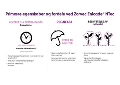 Ved anvendelse af Zorvec Enicade er kartoffelplanterne beskyttet i op til 10 dage. Dette giver 3-4 ekstra dages beskyttelse mod kartoffelskimmel i forhold til andre skimmelløsninger.